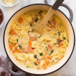 Spinach Tortellini Soup with Crispy
