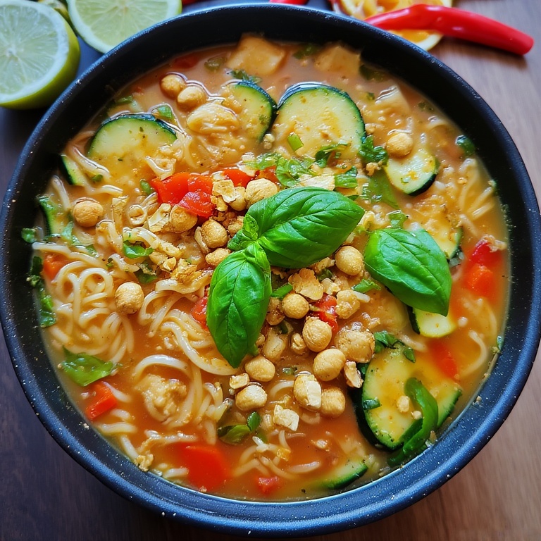 Escape to Thailand with every spoonful of this incredibly satisfying noodle soup! This recipe perfectly balances the four essential Thai flavors: sweet, sour, salty, and spicy. The luscious, quick-to-make broth gets its richness from coconut milk and peanut butter, while fresh basil and a squeeze of lime brighten the entire dish. It’s a truly irresistible bowl that comes together faster than you might think! ⏱️😋
