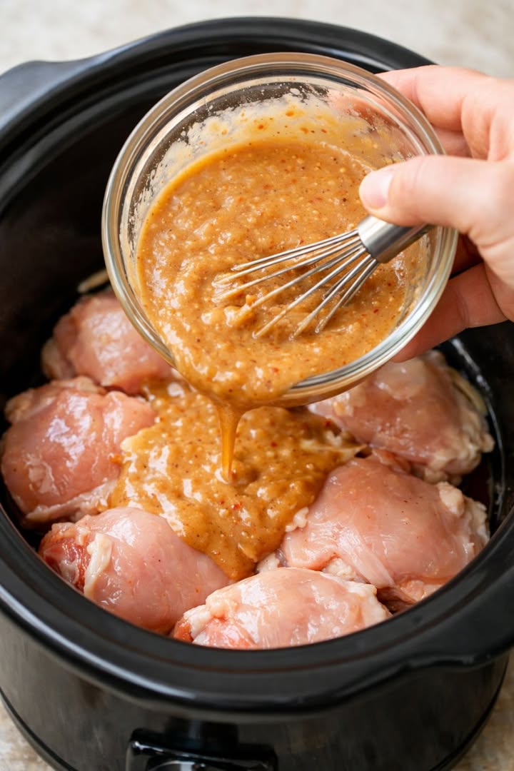 By using boneless, skinless chicken thighs, we ensure the meat stays incredibly juicy and tender, unlike chicken breasts which can often dry out during a long slow-cooker cycle. The star of the show, however, is the whisked sauce. It’s a balanced blend of aromatics and pantry staples that thickens into a glossy glaze as it cooks.