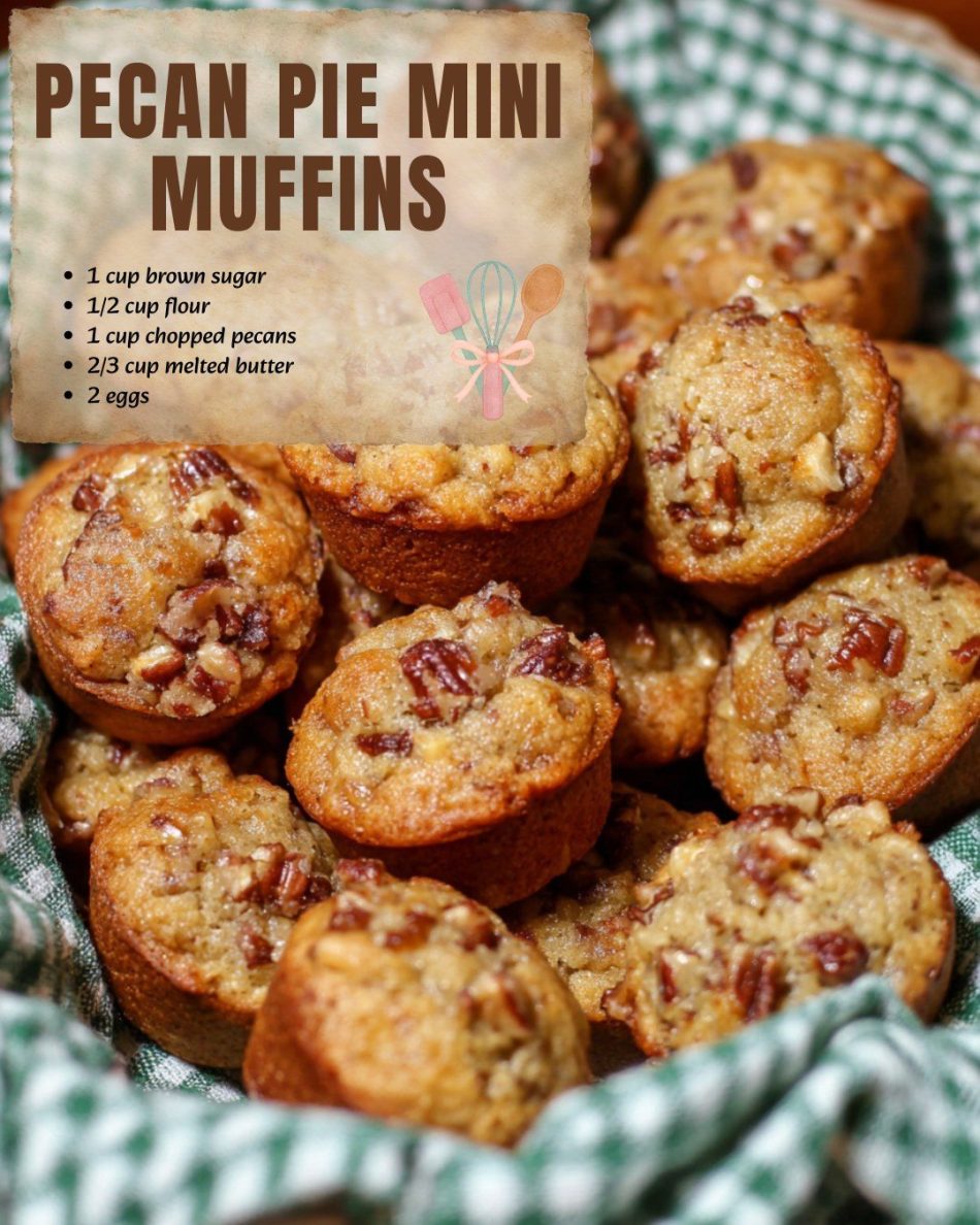 If you love the gooey, caramel-flavored center of a pecan pie but hate messing with pie crust, these Pecan Pie Mini Muffins are your new best friend. With only five pantry staples and about 20 minutes of your time, you can whip up a batch of treats that feature perfectly crispy edges and a soft, melt-in-your-mouth center.