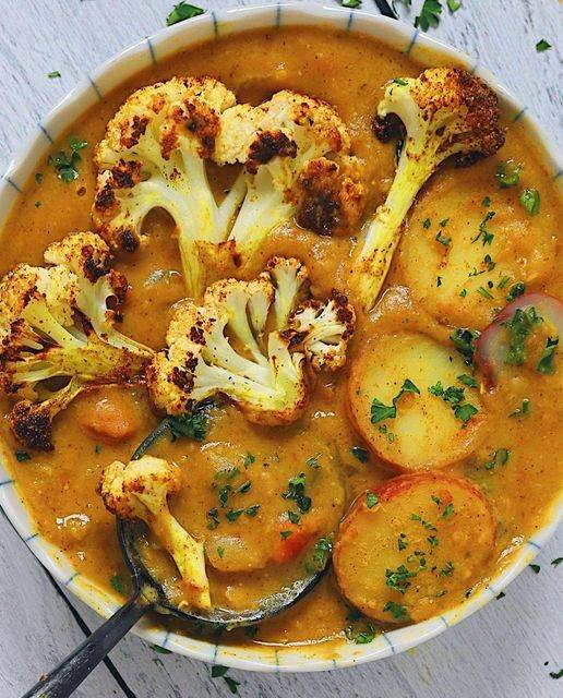 postrecipes September 16, 2023 Ingredients: Neutral oil, 1 1/2 lb cauliflower florets (cut into 1 inch pieces), 2 teaspoons cumin powder, 2 teaspoons coriander powder, 2 teaspoons cinnamon powder, 1 1/2 teaspoons turmeric powder, 1/2 teaspoon teaspoon black pepper, 1/8 teaspoon cayenne pepper (optional or add more to heat), & sea salt, finely chopped 1 large yellow onion, finely chopped 1 large carrot, finely chopped 1 celery stalk, 3 cloves garlic minced , 1 teaspoon grated ginger, 2 tbsp red curry paste, 1 lb halved baby red potatoes, 1 cup red lentils (cleaned and rinsed), 3 cups vegetable stock, 2 cups water, 1 cup coconut milk, 1 tablespoon of maple syrup, juice of 1/2 lime. 4-6 persons Prev Page1 of 2Next PageInstructions in Next Page Article Categories: Vegan Recipes