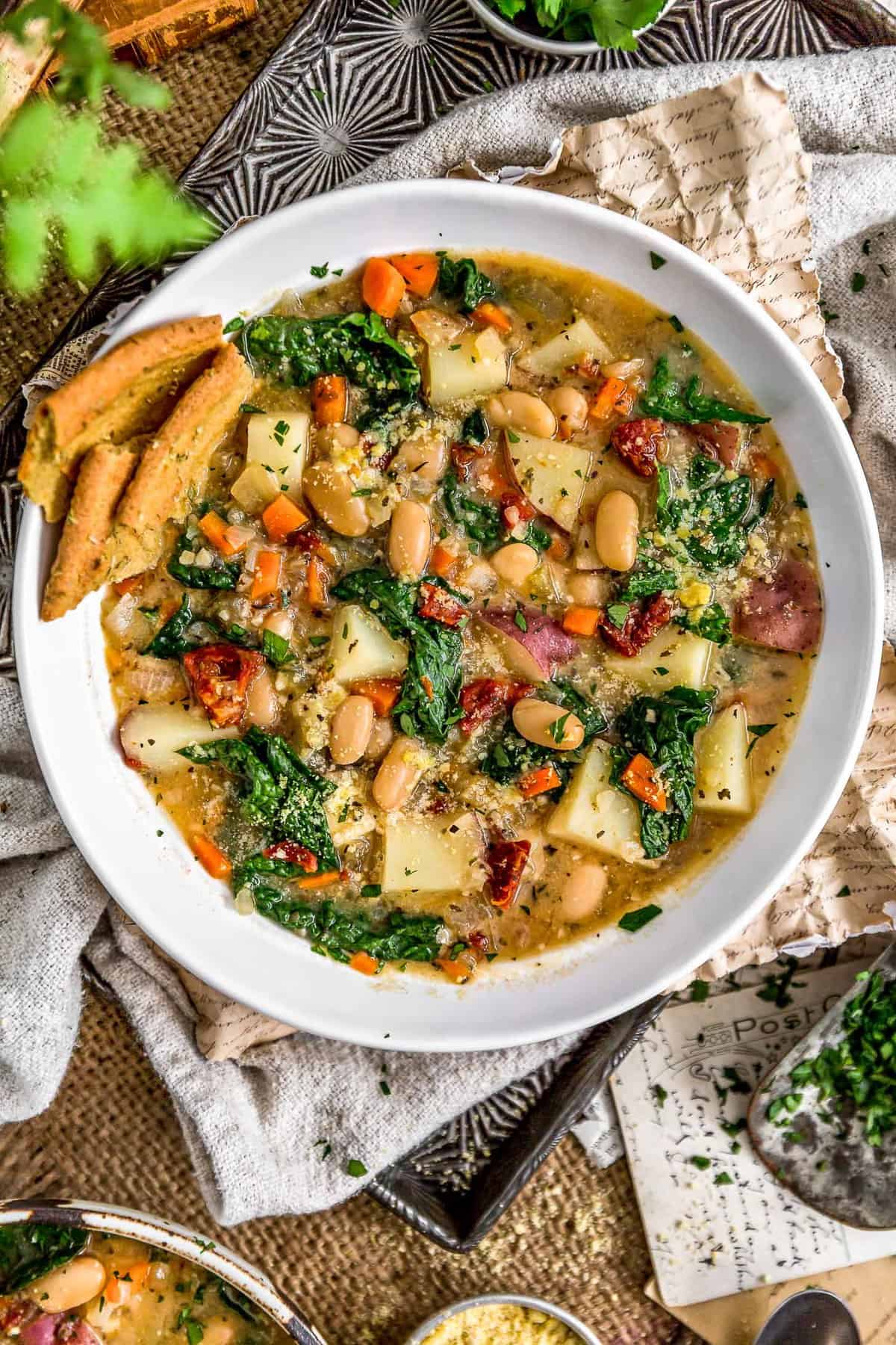 Forever in blissful soup mode over here, and this comforting, flavorful soup brings all the goodness. Perfectly cozy and bursting with Italian spices, this ah-mazing Tuscan Kale Potato Bean Soup is packed with powerhouse ingredients all bathed in a luscious broth. It’s not only easy to make, but the whole family will think you were working in the kitchen all day to create this bowl of deliciousness.